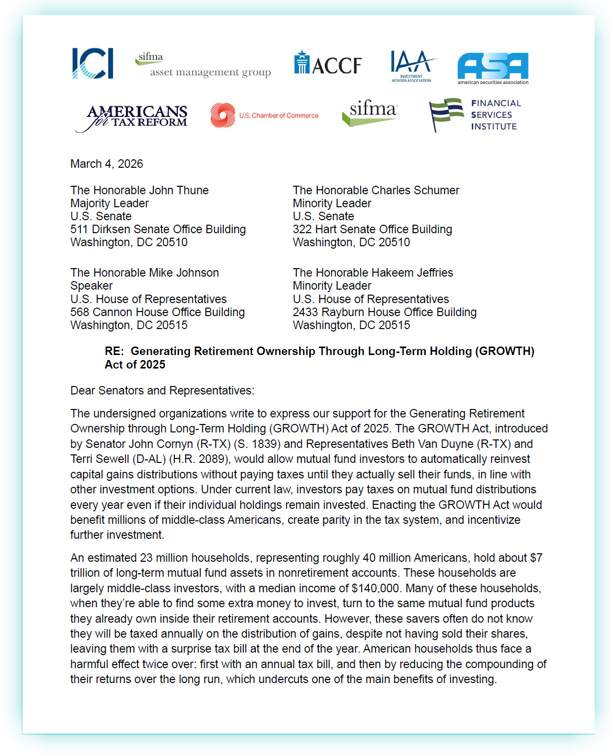 Together, we can help to put more money in the pockets of middle-class investors. Take a smart step to propel tax fairness and support for a strong financial foundation for investors. Use your professional influence to advance the passage of the Generating Retirement Ownership Through Long-Term Holding Act, now in committee.