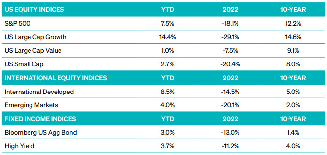 Looking ahead, diversification will likely be far more valuable than in the previous 10 years, which was a period of a rising U.S. dollar, low interest rates, and low inflation. While it’s important to note that we shouldn’t rely solely on the year-to-date returns to predict future performance, we are keeping an eye out for future opportunities and specifically we are looking at international and small-cap equities.